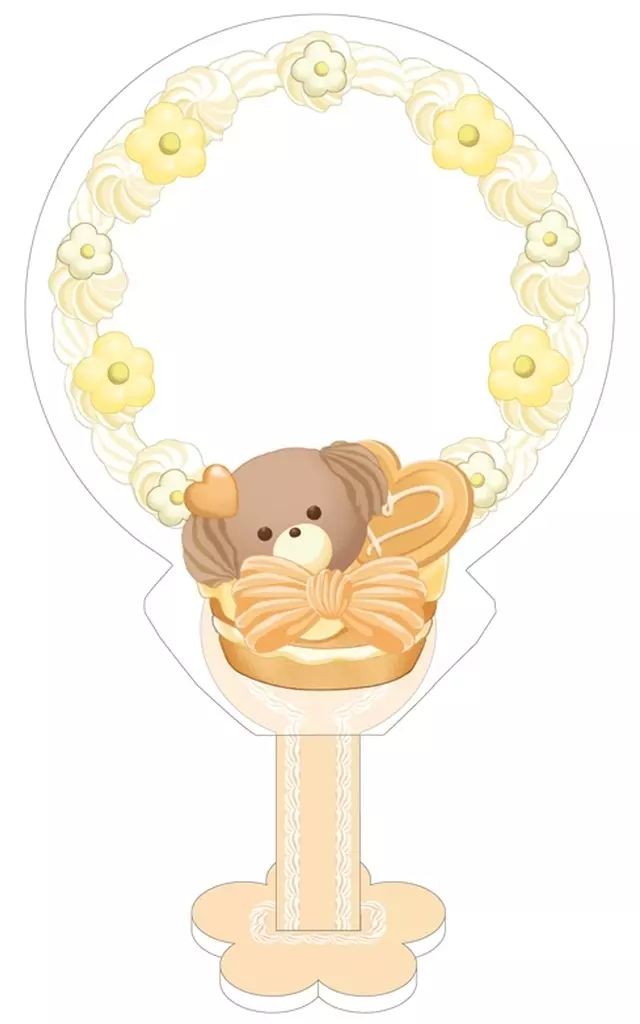 お手持ちの缶バッジを付属のアクリルパーツと一緒にカバーにセットすれば、くまさんのアイシングクッキーがとっても可愛いスイーツスタンドに大変身!