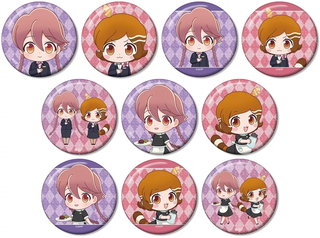 TVアニメ「アポカリプスホテル」×「ホテルモントレ銀座」のコラボレーションアイテム「トレーディング ちびキャラ ホテルモントレ制服&モーニングスタッフver. グリッター缶バッジ」の登場です。