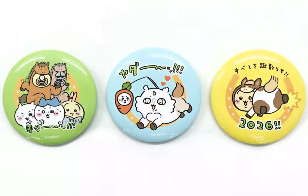 商品解説■「ちいかわ なんか小さくてかわいいやつ ハッピーバッグ2026(午年)」の内、【缶バッジ3個セット】単品になります。その他特典は付属致しません。予めご了承ください。【商品詳細】サイズ:直径約57mm素材:鉄