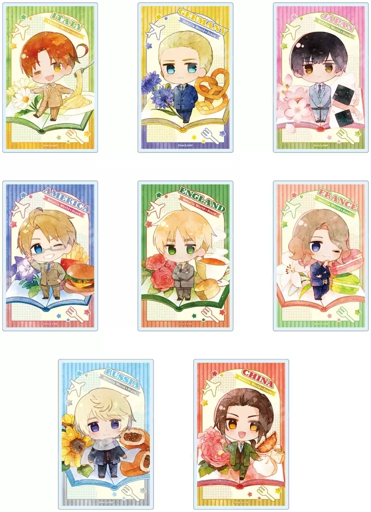 商品解説■こちらの商品は、BOX販売(1BOX8個入り)となります。コレクションしやすいクリアカード【商品詳細】全8種類サイズ:約54×85mm内素材:PET(C)日丸屋秀和/集英社・ヘタリア W ★ S 製作委員会<ラインナップ>イタリアドイツ日本アメリカイギリスフランスロシア中国