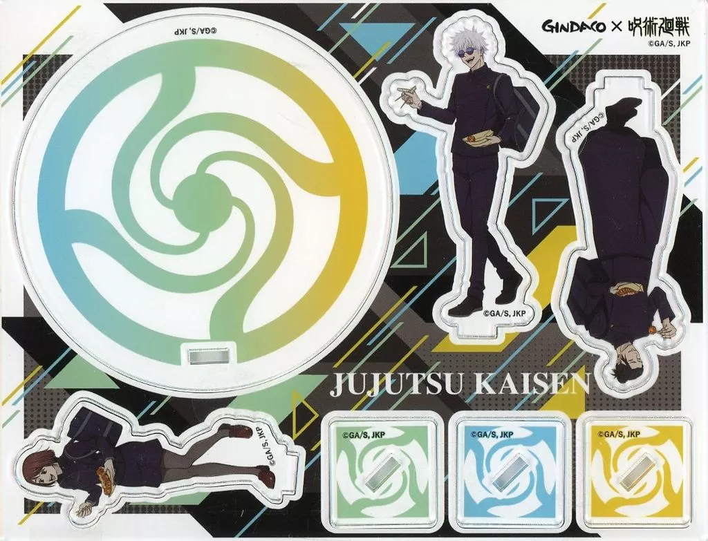 商品解説■「築地銀だこ×呪術廻戦 懐玉・玉折」の「オリジナルアクスタコースター」です。【商品詳細】サイズ:コースター/直径約95mm、個別台座/約W36×D36mm、五条サイズ/約H81mm、夏油サイズ/約H79mm、家入サイズ/約H70mm