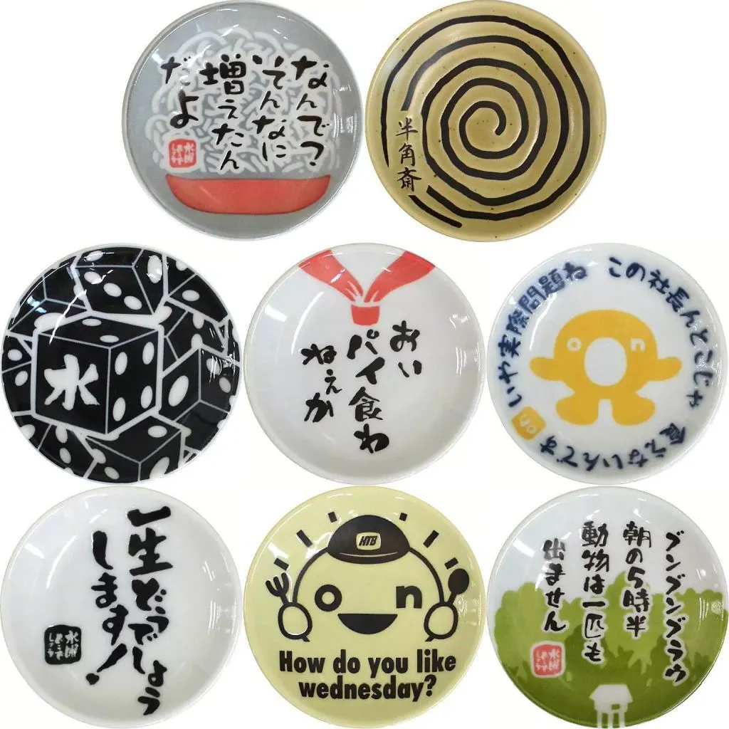 商品解説■「一番くじ 水曜どうでしょう どうでミー賞ザ・ベスト2」景品です。キャッチーなデザインや名セリフが入った豆皿。全8種セット。【商品詳細】<セット内容>なんで?そんなに増えたんだよ半角斎サイコロ/ブラックおいパイ食わねぇかいや実際問題ね この社長んとこじゃ 食えないんです一生どうでしょうします!onちゃんブンブンブラウ 朝の五時半動物は一匹も出ませんサイズ:直径約10cm