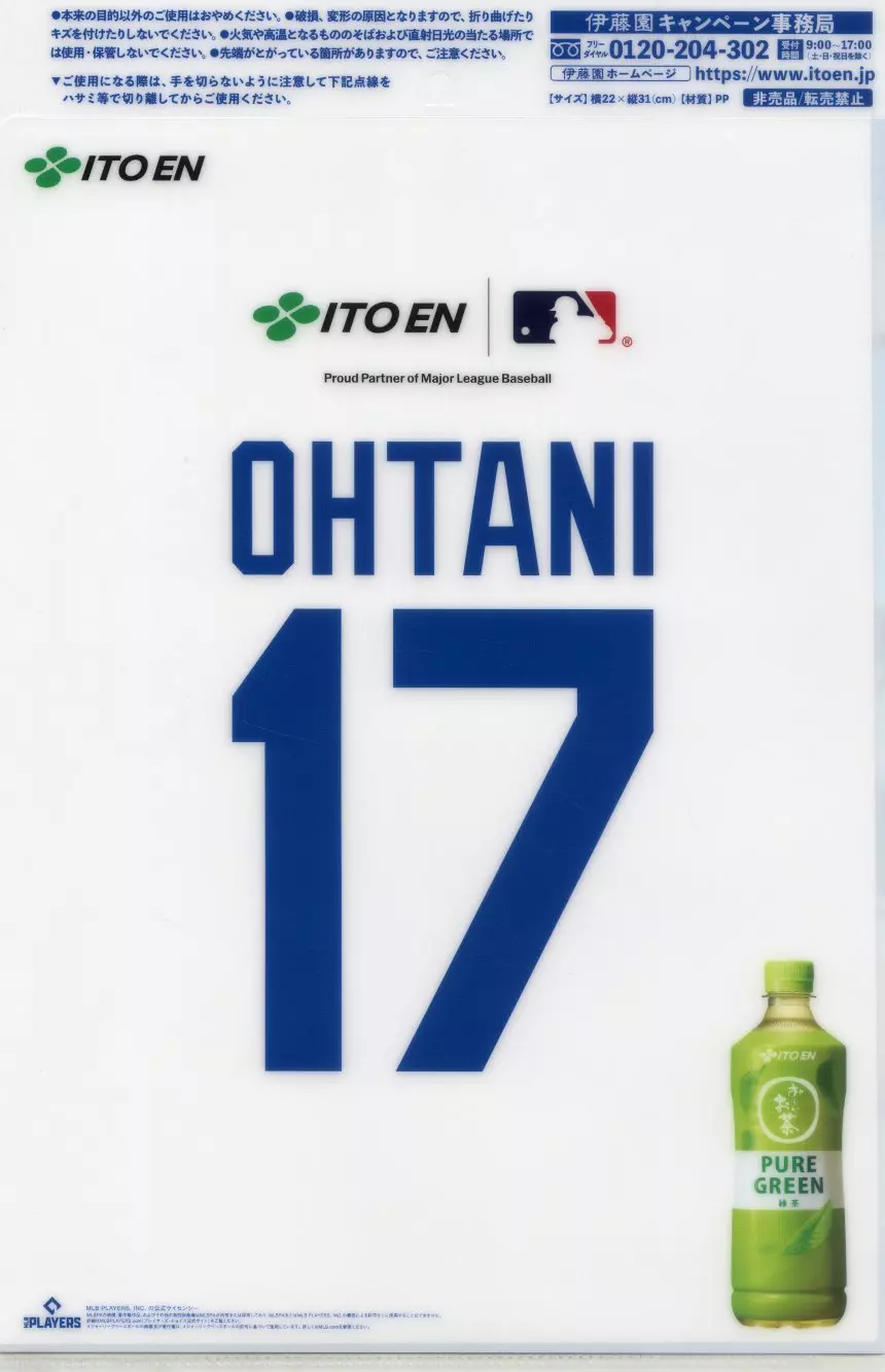 クリアファイル 大谷翔平#17(ロサンゼルス・ドジャース)/PURE GREEN/裏面白 オリジナルクリアファイル 「お~いお茶」 購入特典