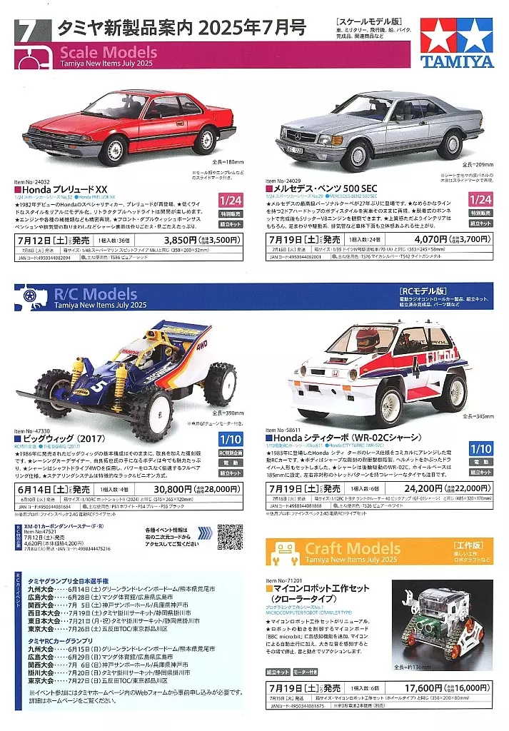 販促品 模型 タミヤ新製品案内 2025年7月号[スケールモデル/ミニ四駆版] 販促品ペーパー