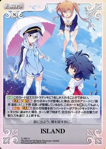 分類:Extra/レア度:Uシリーズ:ブースターパック ISLAND商品解説■■ChaosTCGとは?『ChaosTCG』とは、2人で対戦して遊ぶトレーディングカードゲームです。あなた自身がプレイヤーとなり、各作品のキャラクターの中から自分の大好きなキャラクターを自分のパートナーとして選び、パートナーと協力し合いながら、アリーナと呼ばれる舞台で対戦相手とゲームの勝敗を競います。