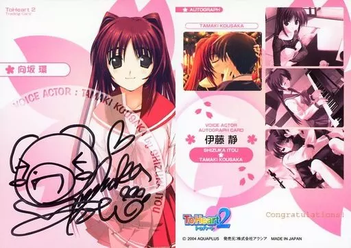 レア度:声優直筆サインカードToHeart2 Another Days Trading Card -V.I.P official edition- 人気声優直筆サインカードが当る!?キャンペーン・商品に描かれているサインは直筆の為、商品画像と実際の商品ではサインの形状、イラスト入等 異なる場合がございます。 予め御了承の上、お買い求め下さい。