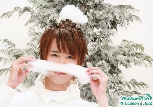 生写真(男性)/踊り手ユニット 022:むすめん。/二番煎じ/横型・顔アップ・衣装白・両手綿・ロゴ「musumen。」/公式生写真