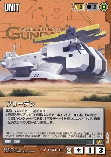 分類:茶/レア度:Uシリーズ:第25弾 双極の閃光商品解説■すべてがリアルな機動戦士ガンダムTCG!登場MS、登場人物はもちろん、作戦名、戦法、コロニー落としの要素までガンダム戦史を忠実に再現!ガンダムファンであれば、ライトな方からヘビーな方まで十分楽しめる、全く新しい「ゲーム」の形、それが二人用の本格的な戦術級対戦TCG「ガンダムウォー」です!