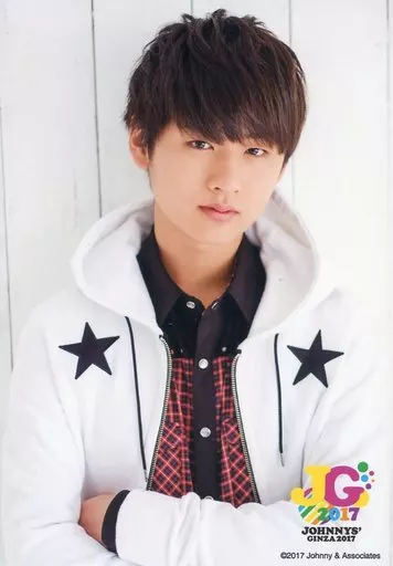 生写真(ジャニーズ)/アイドル/HiHi Jet HiHi Jet/猪狩蒼弥/バストアップ・衣装白黒・赤チェック・腕組み・背景白/「Johnny’s GINZA 2017」オリジナルフォト