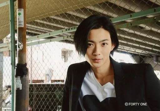 生写真(男性)/俳優 竜星涼/横型・バストアップ・ジャケット黒・インナー白黒・背景フェンス/生写真セットver.2
