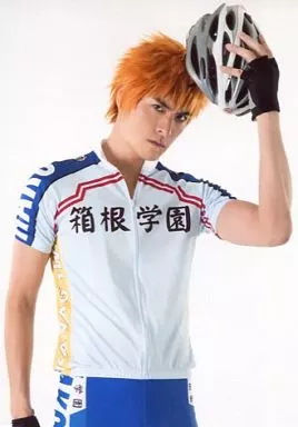 生写真(男性)/俳優 滝川英治(福富寿一)/膝上・衣装ユニフォーム・左手ヘルメット・キャラクターショット/舞台「『弱虫ペダル』箱根学園篇~野獣覚醒~」ブロマイド