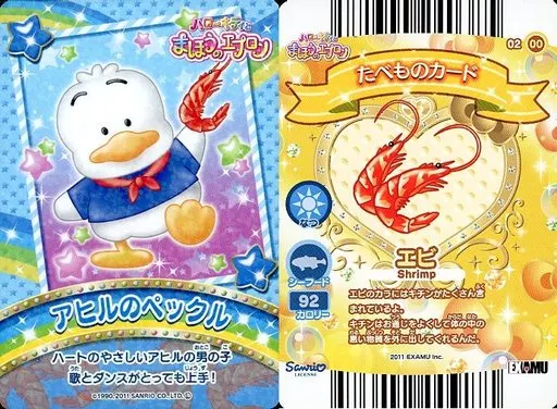 ハローキティとまほうのエプロン/ノーマル/たべものカード/第3弾「レッツ!ハンバーガークッキング!」 02-00[ノーマル]:あひるのペックル/エビ
