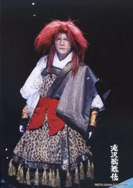 生写真(ジャニーズ)/アイドル/タッキー&翼 タッキー&翼/滝沢秀明/ライブフォト・全身・和服白グレー・豹柄・両手横・衣装黒/滝沢歌舞伎/公式生写真