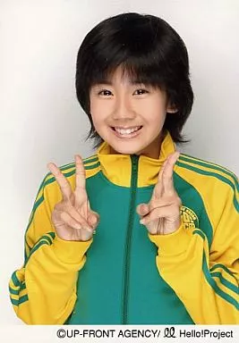 生写真(ハロプロ)/アイドル/°C-ute °C-ute/岡井千聖/バストアップ・ジャージ黄色、緑・両手ピース/公式生写真