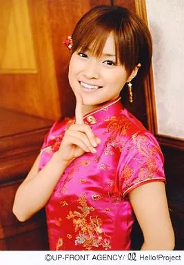 生写真(ハロプロ)/アイドル/モーニング娘。 モーニング娘。/亀井絵里/腰上・衣装ピンク・右人差し指口元・背景茶白/公式生写真