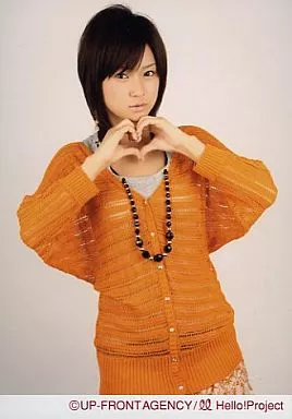 生写真(ハロプロ)/アイドル/モーニング娘。 モーニング娘。/亀井絵里/上半身・衣装オレンジ・インナーグレー・両手でハート・ネックレス黒・カメラ目線/公式生写真