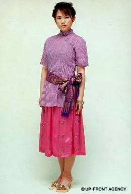 生写真(ハロプロ)/アイドル/モーニング娘。 安倍なつみ(No.08)/背景白/全身/衣装上着赤チェック・ピンクスカート