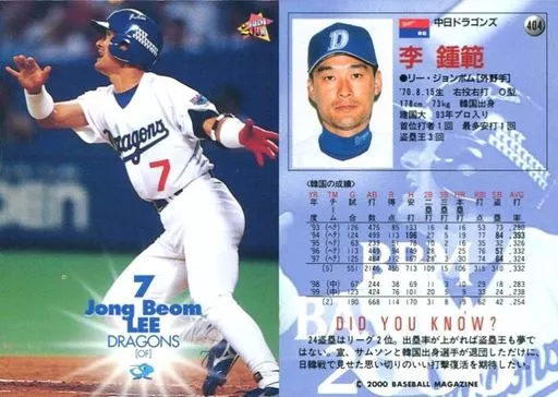BBM/レギュラーカード/BBM2000ベースボールカード 404:李鍾範「中日ドラゴンズ」