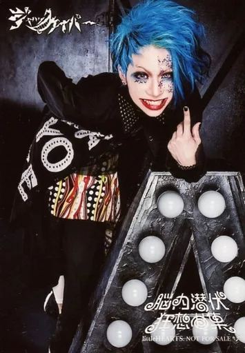 生写真(男性)/ヴィジュアル系バンド/ジャックケイパー ジャックケイパー/李九/膝上・前かがみ・衣装黒・左手中指立て・背景グレー/CD「脳内潜伏狂想曲集」littleHEARTS.(リトルハーツ)特典アーティストフォト