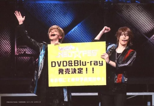生写真(男性)/俳優 神永圭佑(相良辰生)・横井翔二郎(京条竜)/ライブフォト・横型・膝上・衣装黒・青・赤・右手上げ・左手ボード/マジステLIVE2019「NEO★FES」LIVEランダムブロマイド