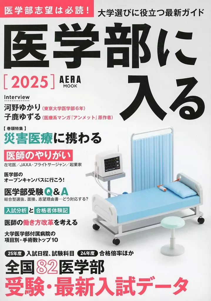 AERAムック/医学部を目指す受験生向けガイド。志望校選びに必要な「全国82医学部データ」は、各大学の試験日程、科目などを網羅。受験体験記や入試分析のほか、目指す医師像の参考となる「医師の生き方」や、医学部の学生生活なども紹介。