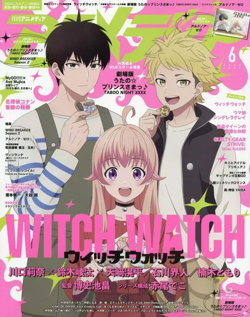 別冊付録:1)B3ポスター、2)クリアファイル/綴込付録:カード、ピンナップ2枚/witch watch