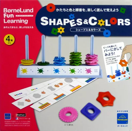 商品解説■三角、丸、お花など、さまざまな形のカラフルなビーズを使って色・かたちの分類を学ぶあそび。