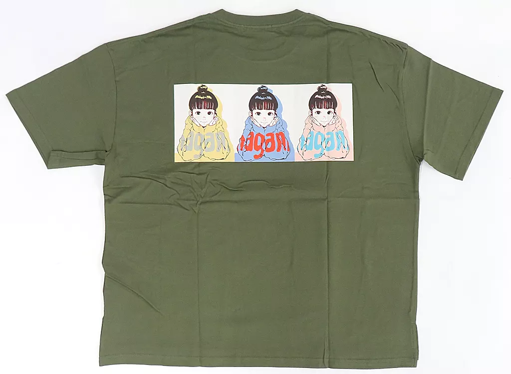 Descrição do Produto ■ T-shirt com uma grande silhueta impressa na parte de trás com todos os três padrões coloridos da ilustração pop de Meiku Nagano desenhada pelo Sr. Furuto Tsumi.