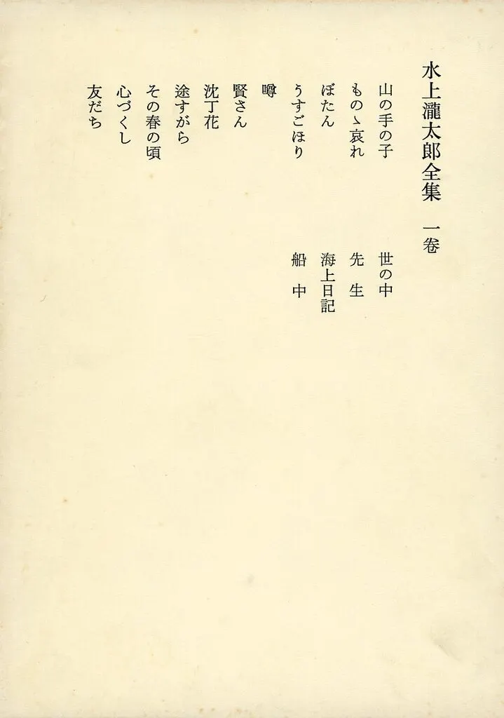 日本文学670、 8p/20cm/山の手の子.もの丶哀れ.ぼたん.うすごほり.噂.賢さん.沈丁花.途すがら.その春の頃.心づくし.友だち.世の中.先生.海上日記.船中