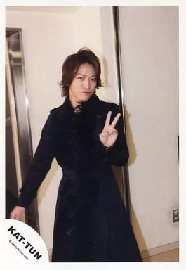 Nome do produto em japonês: 生写真(ジャニーズ)/アイドル/KAT-TUN KAT-TUN/亀梨和也/膝上・衣装黒・左手ピース・背景白/公式生写真