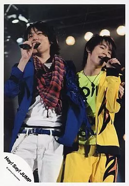 Nome do produto em japonês: 生写真(ジャニーズ)/アイドル/Hey! Say! JUMP Hey! Say! JUMP/伊野尾慧・有岡大貴/ライブフォト・膝上・マイク・衣装青、黄色/公式生写真