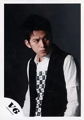Nome do produto em japonês: 生写真(ジャニーズ)/アイドル/V6 V6/岡田准一/ジャケット黒・腰上・背景黒・目線右/公式生写真