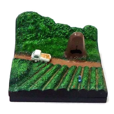 Este é um diorama que reproduz os detalhes de uma fazenda de chá tranquilo.