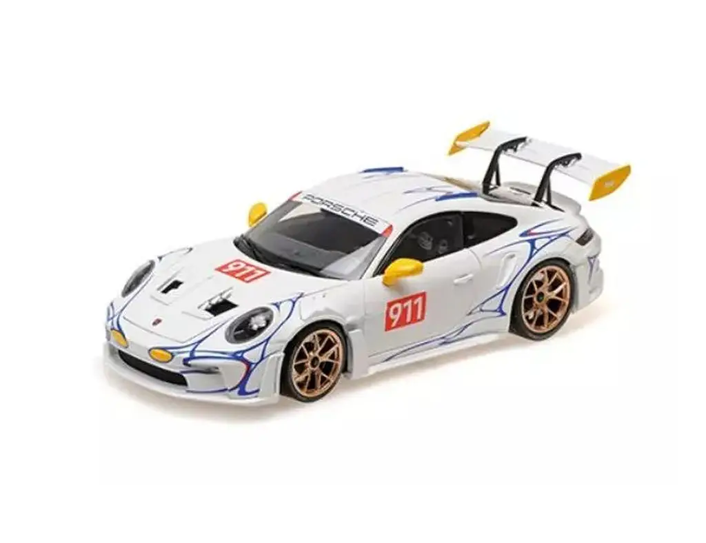 1/18 Porsche 911 (992) GT3RS 2023 (decoração branca x amarela) "MINICHAMPS" [110062042]