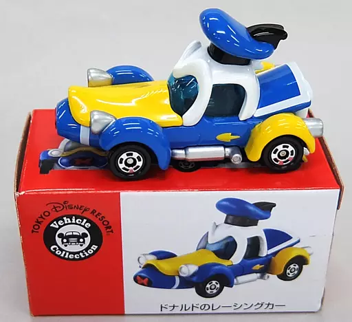 Descrição do produto : "Tomica Disney Vehicle Collection" tem uma linha de carros de corrida Donald (azul x branco).