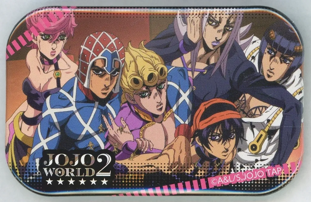 Descrição do produto ■ "Jo Jo 's Strange Adventure JOJO WORLD2" Este é um crachá redondo de cartão redondo que é um prêmio de mini-jogo.