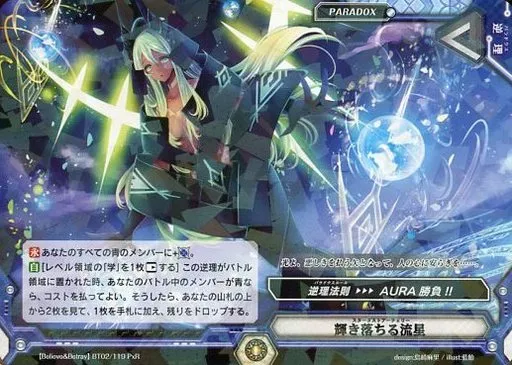 Nome do produto em japonês: ラクエンロジック/P×R/逆理/青/[L&L-BT02]ブースターパック Believe&Betray BT02/119[P×R]:輝き落ちる流星(R仕様)