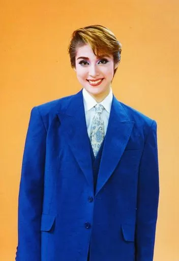 Nome do produto em japonês: 生写真(女性)/宝塚歌劇団(月組)/女優 宝塚歌劇団(月組)/天海祐希/上半身・衣装青白・ネクタイ・右肩上げ・背景オレンジ・笑顔/「宝塚歌劇団」公式生写真