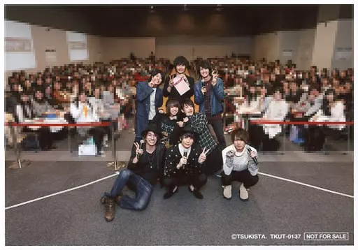 Nome do produto em japonês: 生写真(男性)/俳優 集合(8人)/全身・衣装黒・白・手前センター仲田博喜 水玉模様・しゃがみ・左手ピース・後方に観客/BD「2.5次元ダンスライブ「ツキウタ。」ステージ 第二幕~月歌奇譚「夢見草」~ 限定版」(TKUT-0137)会場限定予約特典 BD発売記念イベント撮影 記念写真ブロマイド