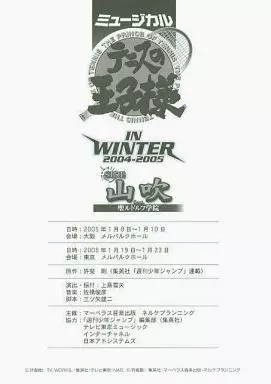 84页样式本产品为附属于《音乐网球王子in winter 2004-2005 side山吹feat.圣鲁道尔夫学院初回限定版》的特典音乐公演剧本单品(非卖品)。