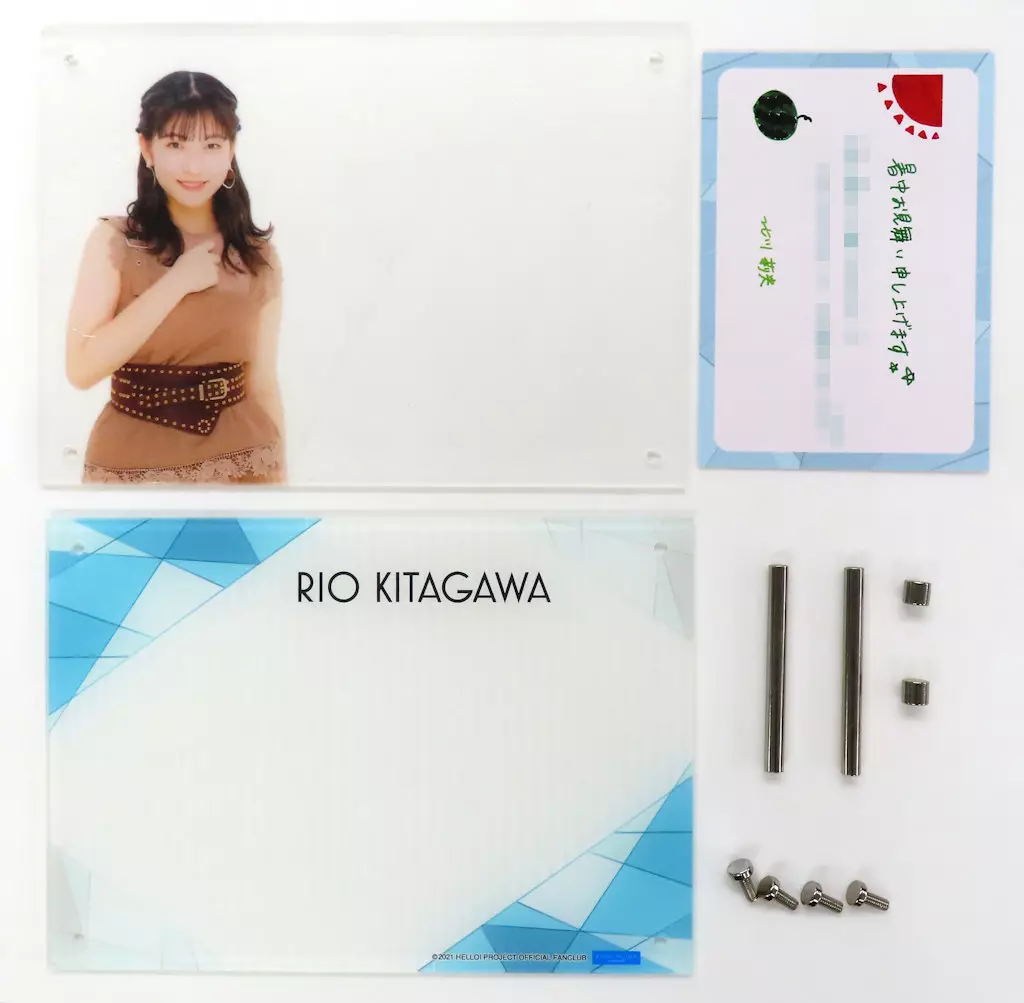 商品解说■2021年5月度Hello!Project官方粉丝俱乐部商店限定商品。成员单人样式的亚克力相框附成员发来的暑期慰问卡(亲笔印花)。【商品详情】亚克力板、前固定零件(内螺纹)×4、后固定零件(外螺纹)×2、后固定零件(支脚)×2框架尺寸:约纵14×横20 cm