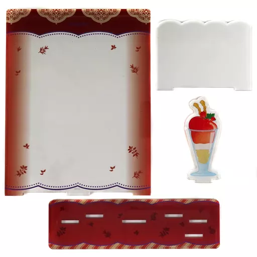商品解说<歌之☆王子殿下♪♪Cafe PARADISE STAR Season 1 in Sweets Paradise>的商品。【商品详情】尺寸:正面零件(约纵155×横120×厚3 mm)、背面零件(约纵60×横80×厚3 mm)、底座零件(约纵40×横140×厚3 mm)、装饰零件(约纵70×横32×厚3 mm)。