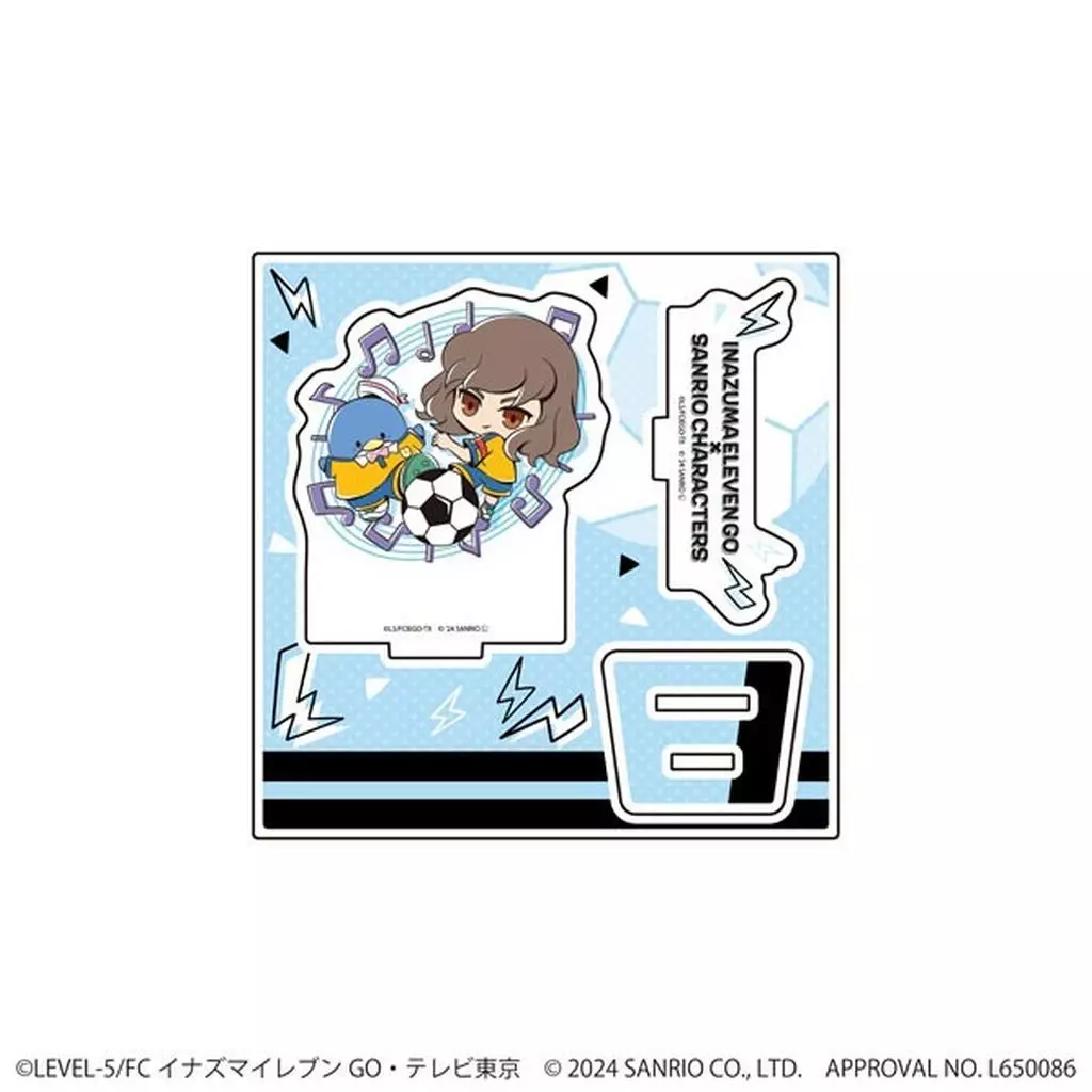 商品解说■模切加工的部分可立起来的立式单品。背面为素色白色。【商品详情】尺寸:约高120 mm×宽120 mm以内(因角色而异)材质:亚克力(C)LEVEL-5/FC闪电十一人GO・东京电视(C)2024 SANRIO CO.LTD.APPROVAL NO.L650086