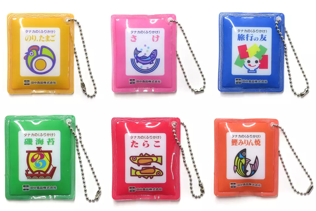 产品解说■这款产品是"田中的鱼粉拌紫菜迷你挂件"共6种SET。田中的鱼粉拌紫菜迷你挂件登场!【商品详情】海苔.鸡蛋鲑鱼旅行朋友海滨海苔鳕鱼子鲣鱼烤甜料酒尺寸:约45 mm