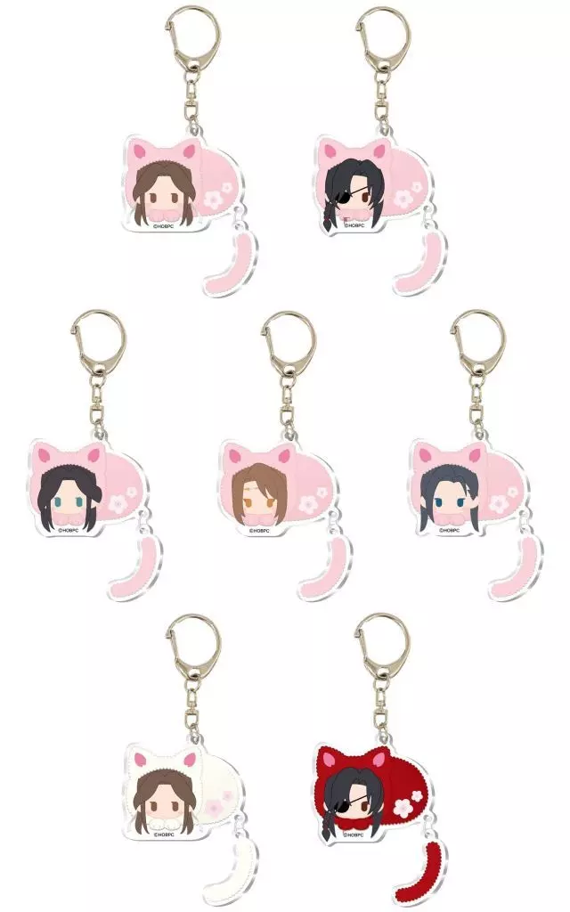 <天官赐福挂件>的"Plat亚克力太阳"登场。【商品详情】共7种尺寸:约H70×W60mm左右材质:亚克力树脂、金属<阵容>谢怜花城师青玄郎千秋明仪谢怜(白色猫咪Ver.)花城(红色猫咪Ver.)
