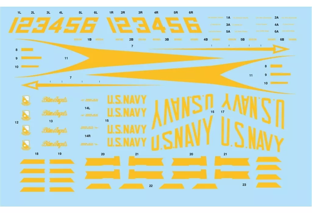 以1/144的比例再现了美海军杂技飞行队Blue Angels从2021年开始使用的F/A-18E超级大黄蜂/A-18 E超级大黄蜂的塑料模型组装套装。