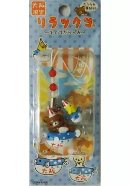 商品解说■大受欢迎!<轻松熊>的当地挂件从挂件到大坂限定的河豚ver.登场了!戴着红色和白色的三角帽子,乘坐在写着<大阪>的河豚上。【商品详情】尺寸:约20mm(吉祥物挂件部分)样式:附挂件绳