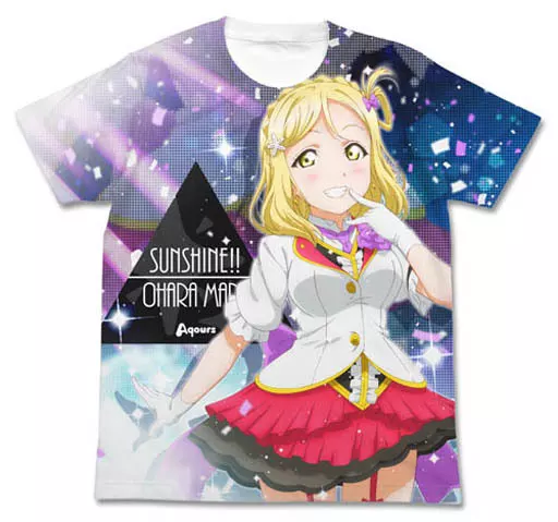 商品解说■为支援「鞠莉」的您!插图与设计非常引人注目的全图案一片以身穿「MIRAI TICKET」服装的成员站在舞台上的姿态为设计灵感。※本商品仅正面有印花(背面为白底)。※全印花技法上,接缝及腋下部分会产生少许卡苏莱及印花破损。敬请见谅。【商品详情】尺寸:L(约衣长70cm、身宽53cm、袖长21cm)材质:棉100%颜色:白色(C)2017项目LOVELIVE!阳光!