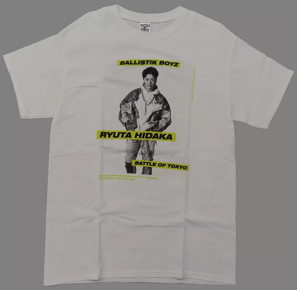 商品解说的商品。以每位成员为焦点的照片T恤。BACK为现实世界与BATTLE OF TOKYO的不同剪裁印花,让您享受2种帅气风格。【商品详情】尺寸:衣长约74 cm、身宽约51 cm颜色:白色材质:棉100%※关于二手商品,可能会出现少许擦伤・污渍・磨损等情况,但不会对您在穿着・使用时造成影响。