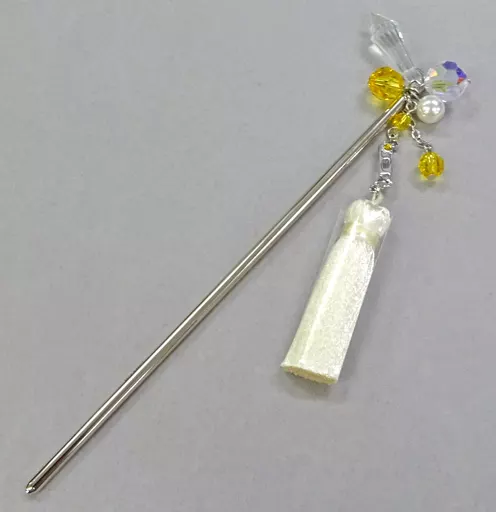 产品解说■在<偶像星愿idolish7 NANAIRO商店in丸井>销售的『簪子-簪子-』。【商品详情】尺寸:[轴]22.5 cm/[下垂]8 cm材质:黄铜材、亚克力铜材、树脂珍珠、聚酯※银色产品在保管时可能会有薄擦、暗沉、黑斑。※二手金属饰品可能会有轻微的擦伤、脏污等。敬请见谅。